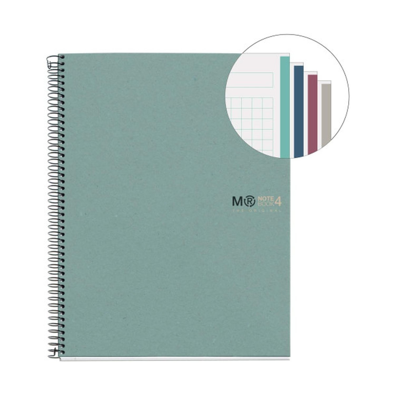 Cuaderno 100 reciclado nb-4. Con cubiertas de cartón 100% reciclado impreso (post consumo) .Papel 100% reciclado recuperado post consumo tamaño a4 210 x 297 mm .Contiene 120 hojas de 80 g/m Las hojas tienen 4 taladros para poder .Archivar las hojas y microperforadas para un arranque fácil. El rayado de las hojas es una cuadrícula de 5 x 5 mm Con 4 franjas de colores el color del rayado de la cuadrícula coincide con la banda de color.La impresión offset de alta calidad consigue una mayor sutileza y limpieza destacando la escritura y por lo tanto facilitando la lectura y el estudio.Espiral continuo que permite la abertura en plano del cuaderno además de dar la vuelta completa y con cierre coilock que evita “enganches”.Fabricado en españa Cuenta concertificación fsc recycled credit que certifica que nuestro producto es 100% reciclado reduciendo al mínimo el impacto medio ambiental Dispone también de la etiqueta eu ecolabel y el certificado blue angel .